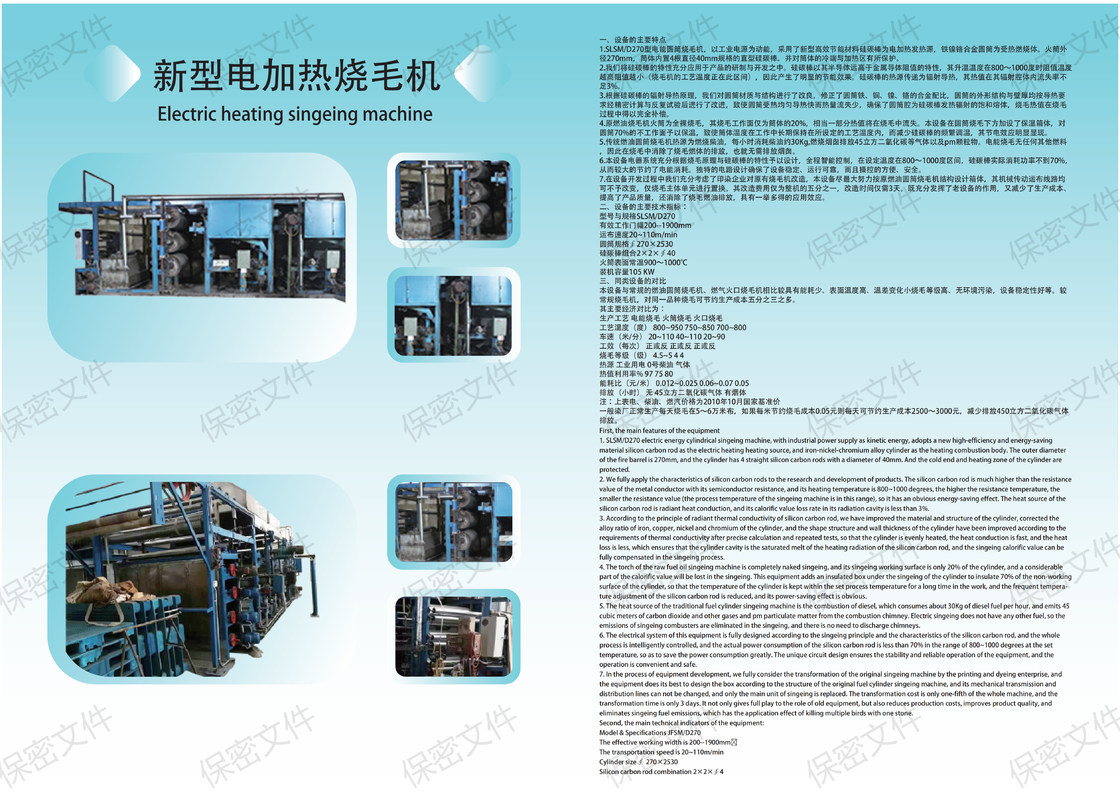 Model and specifications SLXX / 270 Effective work Width 200--1900mm Transmission speed 20 ~ 110m / min Cylindrical specifications ∮ 270 × 2530 silicon carbide rod combination 2 × 2 × ∮45 Flash surface temperature 900 ~ 1000 ℃ installed capacity 180KW